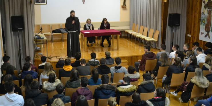 U petak, 13. prosinca održan je predzadnji susret naše Frame u ovom pologodištu. Unatoč nevremenu susretu je prisustovao veliki broj framaša. Ovaj susret bio je poseban, a takvim su ga učinile naše gošće Ružica Vranjković i Adrijana Marić, koje su ujedno i članice Trećeg reda naše župe. Ovaj susret ujedno je predstavljao jedinstvo i zajedništvo između Frame i Trećeg reda. Susret smo kao i obično započeli molitvom, a tema susreta bila je „adolescencija iz perspektive odraslih/roditelja“. Kroz predavanje smo mogli čuti poučnu životnu priču Ružice te par anegdota iz života Adrijane. Ružica nam je približila što znači ne odustati od svojih snova i u najtežim trenutcima; što znači predati sve svoje probleme Gospodinu te kako jedino upornošću i uz Njegovu pomoć možemo postić ono što želimo. Pričala nam je o svojoj srednjoškolskoj nezrelosti koja je bila uzrok dugogodišnje patnje i tuge koju je Ružica nosila na duši. Naglasila je da je u tom razdoblju svoga života bila okrenuta vlastitoj samovolji, a ne dobronamjernom savjetu svojih roditelja. Savjetovala nas je da ne ponavljamo njene greške te da poslušamo savjete onih koji nama žele najbolje - naših roditelja. Nakon toga počeo je Adrijanin dio predavanja. Ona je svoje predavanje započela anegdotom iz razdoblja kada je bila sedamnaestogodišnjakinja. Pričala nam je kako je neposluhom, koji je bio uzrokovan utjecajem društva, povrijedila svoje roditelje te nije vidjela zabrinutost u njihovim očima. Obe gošće su se ostvarile kao majke te su ujedno i majke nekih od naših framaša. Na taj način su nas uvele i u taj roditeljski pogled na cijelo razdoblje adolescencije. Približile su nam kako zapravo izgleda taj roditeljski strah i zabrinutost koja se javlja kad njihovi najmiliji nisu uz njih. Objasnile su nam ono što zapravo i same nekad nisu shvaćale. Potakle su nas da češće svojim roditeljima iskazujemo ljubav, jer zapravo oni neće zauvijek bit tu kao naš oslonac i kao ljudi koji su tu uvijek kad ih zatrebamo. Pozvale su nas da ih poštujemo i da ih volimo dok su još tu, jer će kasnije možda bit prekasno za to. Dio koji je mene osobno dirnuo i potakao me na razmišljanje o mom odnosu prema roditeljima je onaj kada je Adrijana pričala o smrti svog oca, odnosno o svojim posljednjim pozdravima s njim. Smatram da će mi ovaj susret ostat urezan u sjećanje, jer smo dokazali zajedništvo framaša i trećara te jer su nam jedan od prijašnjih susreta o poštivanju roditelja, predstavili u praksi. Zahvalna sam im na osjećajima koje su izazvale u meni tijekom susreta te se nadam da ćemo svi mi početi malo više brinuti o vremenu koje provodimo s roditeljima.