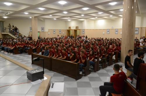 U nedjelju, 23. rujna 2019. godine, održani su obredi Primanja i Obećanja u našoj župi za članove Frame pod geslom: „Tko je vjeran u najmanjem, i u najvećem je vjeran.”(Lk 16,10). Sveta misa počela je u 18:00h svečanom procesijom u kojoj su sudjelovali naši prvoobećanici. Misu je predvodio naš duhovni asistent fra Jozo Hrkać, a misno slavlje pjesmom je uveličala Frama Mostar. Fra Jozo u propovijedi nam je približio što to zapravo znače naša obećanja, što to znači predati svoju mladost Bogu. Također je pričao o vjeri, kako trebamo biti ustrajni u vjeri kako u najvećem, tako i u najmanjem. Nakon propovijedi uslijedila su Primanja i Obećanja. U našu Framu primljeno je 70 novih članova, prva obećanja dalo je njih 47, a svoja obećanja obnovilo je 110 framaša. Poslije svete mise uslijedila je zakuska za sve prisutne Framaše koja je ove godine održana u maloj sportskoj dvorani. Ovim putem zahvaljujemo svima koji su na bilo koji način sudjelovali u organizaciji ove