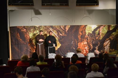 U nedjelju, 26. 5. 2018., dramska sekcija Frame Posušje sudjelovala je na V. Festivalu kršćanskog kazališta u Zagrebu s predstavom "Dvije majke". Ovo je jedini festival kršćanskog kazališta u cijeloj Hrvatskoj. Iz Posušja smo krenuli u ranim jutarnjim satima, a u Zagreb smo došli oko podne. Odmah smo pošli na generalnu probu u dvoranu Svetog Franje gdje smo bili jako ugodno dočekani. Nakon probe otišli smo u franjevački samostan Hercegovačke franjevačke provincije u kojem smo i odsjeli. Tu smo slavili i Svetu misu koju je služio duhovni asistent Frame Posušje - fra Jozo Hrkać. Zatim smo uzeli malo slobodnog vremena koje smo proveli odmarajući se i šetajući gradom. Poslije svega toga, u 20:00 sati uslijedilo je izvođenje predstave koja je ujedno bila i samo zatvranje V. Festivala kršćanskog kazališta. No, prije predstave gospodin Vladimir Gerić uveo nas je u kazališnu večer koja je bila u spomen na Vikija Glovackog. Nakon izvođenja dramskog komada publika nas je dočekala s gromoglasnim pljeskom. Također, htjeli bi zahvaliti jako gostoljubivim fratrima u samostanima Dubrava i Sveti Duh, svima koji su pomogli oko tehničke podrške i svima onima koji su nas podržali na bilo koji drugi način.
