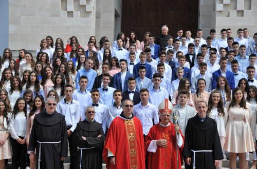 Župnik fra Mladen je na kraju euharistijskoga slavlja čestitao svima koji su danas primili dar Duha Svetoga i pozvao ih da ga raspiruju u svom životu. Nakon liturgijskoga slavlja snimljena je zajednička fotografija krizmanika, njihovih kumova i vjeroučitelja s biskupom Ratkom.