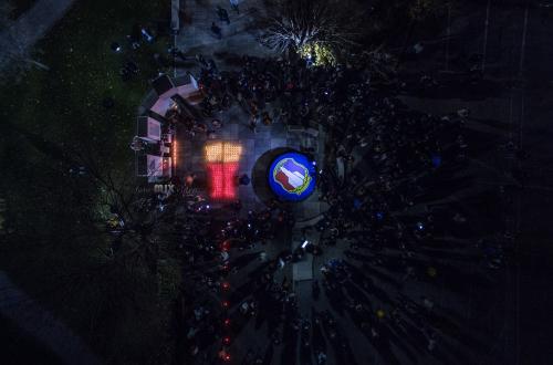 Posljednjih nekoliko godina naš grad jedne večeri u studenom utihne. Automobili uspore, televizori se stišaju, a ulicama ide kolona sa molitvom na usnama i svijećama u rukama. I ne mora se naglašavati što se obilježava – svi znaju što se to dogodilo 18. 11. 1991., svi znaju za pad Grada heroja. I svi ga svojatamo - jer on, Vukovar, predstavlja sve ono što se događalo u Domovinskom ratu, sve ljude koji su bili prisiljeni godine života staviti u jednu torbu i pobjeći, djecu koja su iz rata izišla kao siročad, mlade koji su umjesto olovaka držali puške. Predstavlja sve uništene živote, svu nepravdu i svu nevinu krv koja je prolivena da bi se mi danas mogli javno i slobodno predstavljati kao Hrvati. Vukovar je pokazao da vjera, ljubav i zajedništvo mogu odolijevati dotada nezamislivim silama, nebrojenim količinama oružja i svakodnevnom strahu. U čast i kao izraz poštovanja i zahvalnosti svima njima, poslije svete mise u 17 sati smo do Trga hrvatskih branitelja kroz dvije glavne ulice postavili svijeće, a zatim smo na na trgu prikazali vodotoranj s križem - simbol rana, ali i snage. Jer duša Vukovara nije pala, ona živi kroz sjećanja i kroz grad koji se ponovno budi. Ovaj vodotoranj koji smo oblikovali možda je materijalno privremen spomenik, ali je zasigurno trajan u srcima mnogih ljudi. Spomenik kao opomena da ne mrzimo nikoga, ali da ne zaboravimo tko smo i što smo, kolikim je žrtvama to stečeno te da ne dopustimo da nam to netko oduzme. Neka nas ovaj križ vodi, kao što je vodio i branitelje, da ne gubimo nadu i da iskazujemo dobrotu kad god možemo jer je naša knjiga života čitava, dok su njihove stranice zauvijek izgubljene.