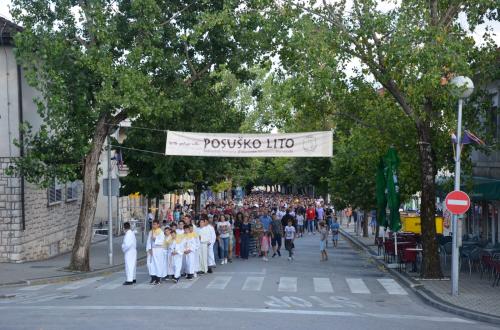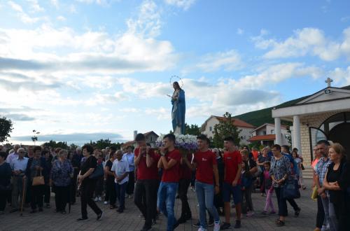 U našoj župi tradicionalno je proslavljena svetkovina Uznesenja Blažene Djevice Marije na nebo - Velika Gospa. Kao i svake godine, i ove godine naša je župa organizirala slavlje devetnice na čast te svetkovine. Svakog dana devetnice vjernici su imali priliku izmoliti pobožnost krunice u 17:30 te nazočiti misnom slavlju u 18:00 sati. Prije početka misnog slavlja molila se molitva devetnice na čast Velike Gospe koju su predmolili naši fratri iz župne kuće. Također, svaki dan misnim slavljem je predsjedao uvijek drugi svećenik koji bi bio pozvan u našu župu. Uočnica svetkovine svečano je obilježena procesijom i misnim slavljem. U 18:00h slavlje je započelo devetnicom na gradskom groblju „Martića križ“, odakle je krenula procesija kroz Ulicu fra Grge Martića i Ulicu kralja Tomislava do crkvenog dvorišta. Tijekom procesije molila se Gospina krunica. Devetnicu je predmolio župnik fra Mladen Vukšić. Euharistijsko slavlje predslavio je don Mladen Parlov, profesor na Katoličkom bogoslovnom fakultetu Sveučilišta u Splitu. Kao i prethodnih godina, vjernici su imali priliku za sakrament svete ispovijed prije i tijekom svake devetnice. Tako su vjernici naše župe spremno i čistih srca dočekali blagdan Velike Gospe. Misno slavlje započelo je oko 18:30. Pred sam kraj misnog slavlja uslijedio je blagoslov djece i nabožnih predmeta. Na dan svetkovine ispovijed je počela u 6:00h, a svete mise su se slavile u 7, 9, 11 i 19 sati. Svečana sveta misa slavljena je u 11:00h. Misu je, kao i na uočnicu, predslavio don Mladen Parlov. Don Mladen je uputio poučnu poruku koja je za cilj imala stvoriti bistrinu svijesti kod mladih i potaknuti ih na razmišljanje o iluzijama koje današnji svijet nudi te da si postave pitanje kako oni danas žive i koliko je Bog prisutan u njihovom životu. Na svečanom misnom slavlju nisu sudjelovali samo župljani, nego i ljudi iz drugih župa koji su došli na hodočašće. Na koncu euharistijskoga slavlja prisutnima se obratio župnik fra Mladen Vukšić. Nakon izrečene čestitke svim župljanima, zahvalio se svima koji su na bilo koji način pridonijeli organizaciji ovoga slavlja.