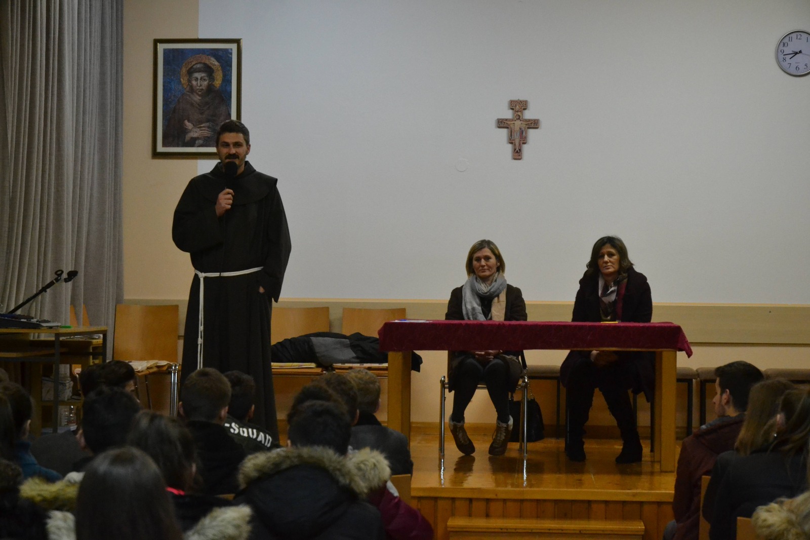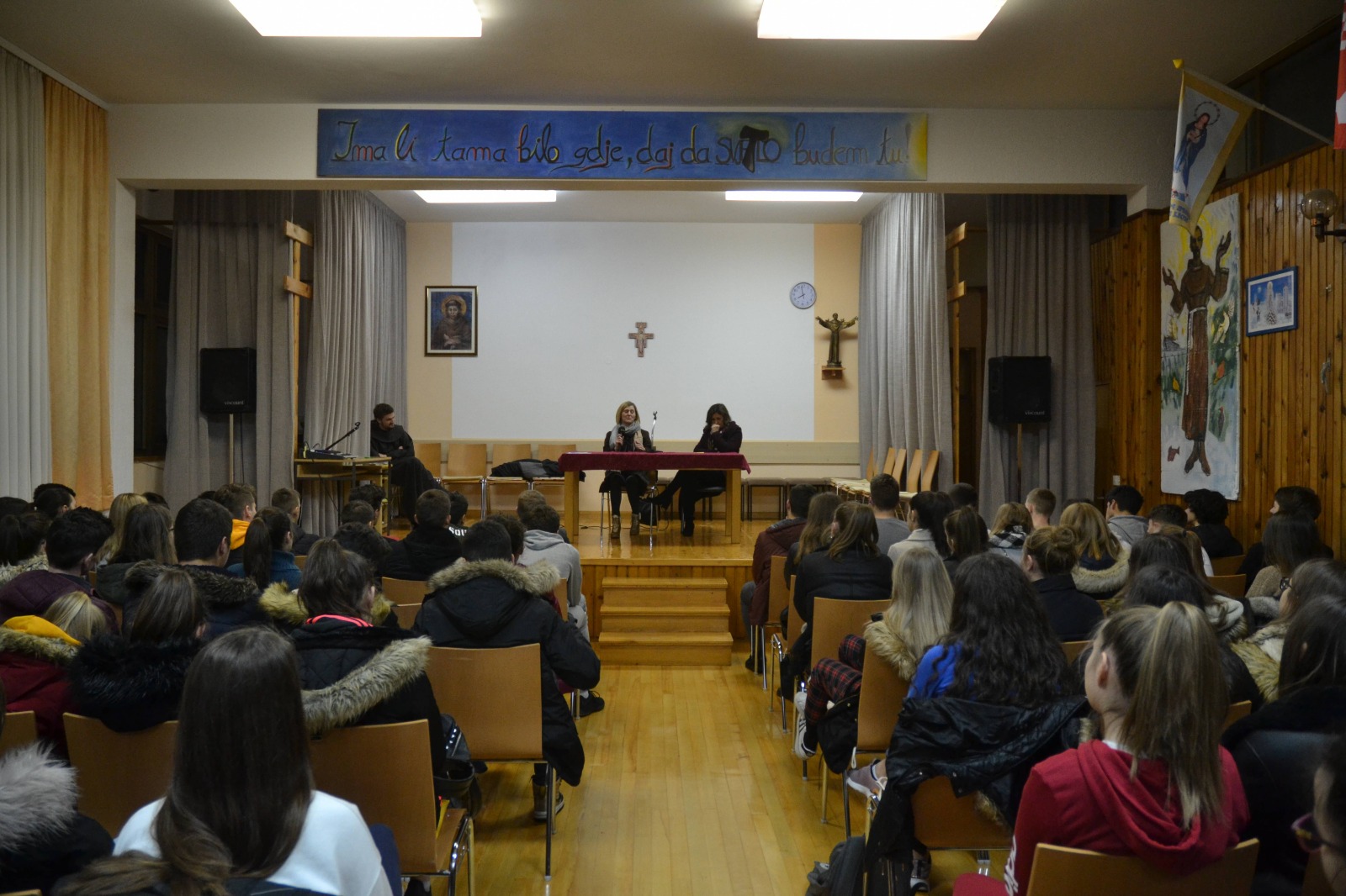 U petak, 13. prosinca održan je predzadnji susret naše Frame u ovom pologodištu. Unatoč nevremenu susretu je prisustovao veliki broj framaša. Ovaj susret bio je poseban, a takvim su ga učinile naše gošće Ružica Vranjković i Adrijana Marić, koje su ujedno i članice Trećeg reda naše župe. Ovaj susret ujedno je predstavljao jedinstvo i zajedništvo između Frame i Trećeg reda. Susret smo kao i obično započeli molitvom, a tema susreta bila je „adolescencija iz perspektive odraslih/roditelja“. Kroz predavanje smo mogli čuti poučnu životnu priču Ružice te par anegdota iz života Adrijane. Ružica nam je približila što znači ne odustati od svojih snova i u najtežim trenutcima; što znači predati sve svoje probleme Gospodinu te kako jedino upornošću i uz Njegovu pomoć možemo postić ono što želimo. Pričala nam je o svojoj srednjoškolskoj nezrelosti koja je bila uzrok dugogodišnje patnje i tuge koju je Ružica nosila na duši. Naglasila je da je u tom razdoblju svoga života bila okrenuta vlastitoj samovolji, a ne dobronamjernom savjetu svojih roditelja. Savjetovala nas je da ne ponavljamo njene greške te da poslušamo savjete onih koji nama žele najbolje - naših roditelja. Nakon toga počeo je Adrijanin dio predavanja. Ona je svoje predavanje započela anegdotom iz razdoblja kada je bila sedamnaestogodišnjakinja. Pričala nam je kako je neposluhom, koji je bio uzrokovan utjecajem društva, povrijedila svoje roditelje te nije vidjela zabrinutost u njihovim očima. Obe gošće su se ostvarile kao majke te su ujedno i majke nekih od naših framaša. Na taj način su nas uvele i u taj roditeljski pogled na cijelo razdoblje adolescencije. Približile su nam kako zapravo izgleda taj roditeljski strah i zabrinutost koja se javlja kad njihovi najmiliji nisu uz njih. Objasnile su nam ono što zapravo i same nekad nisu shvaćale. Potakle su nas da češće svojim roditeljima iskazujemo ljubav, jer zapravo oni neće zauvijek bit tu kao naš oslonac i kao ljudi koji su tu uvijek kad ih zatrebamo. Pozvale su nas da ih poštujemo i da ih volimo dok su još tu, jer će kasnije možda bit prekasno za to. Dio koji je mene osobno dirnuo i potakao me na razmišljanje o mom odnosu prema roditeljima je onaj kada je Adrijana pričala o smrti svog oca, odnosno o svojim posljednjim pozdravima s njim. Smatram da će mi ovaj susret ostat urezan u sjećanje, jer smo dokazali zajedništvo framaša i trećara te jer su nam jedan od prijašnjih susreta o poštivanju roditelja, predstavili u praksi. Zahvalna sam im na osjećajima koje su izazvale u meni tijekom susreta te se nadam da ćemo svi mi početi malo više brinuti o vremenu koje provodimo s roditeljima.