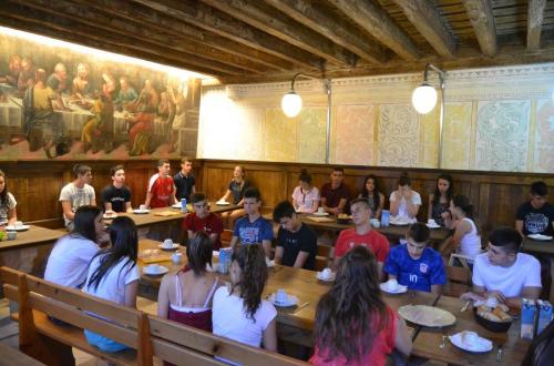 Jutarnji obrazovni dio zaključivali smo molitvom Anđeoskog pozdrava točno u 12 sati, a potom bi bio poslužen ručak. Poslije ručka imali smo mogućnost za odmor ili igru. Poslijepodnevni su nam sati redovito prolazili u iskušavanju vještina plivanja i drugih sportova na moru. U 19.30 sati smo svaki dan u samostanskoj crkvi slavili svetu misu s Večernjom molitvom koju je predslavio naš fra Ivan. Nakon večere smo imali slobodno vrijeme za šetnju i zajedničko druženje do 23 sata kada smo išli na počinak.