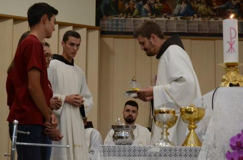 U nedjelju, 23. rujna 2019. godine, održani su obredi Primanja i Obećanja u našoj župi za članove Frame pod geslom: „Tko je vjeran u najmanjem, i u najvećem je vjeran.”(Lk 16,10). Sveta misa počela je u 18:00h svečanom procesijom u kojoj su sudjelovali naši prvoobećanici. Misu je predvodio naš duhovni asistent fra Jozo Hrkać, a misno slavlje pjesmom je uveličala Frama Mostar. Fra Jozo u propovijedi nam je približio što to zapravo znače naša obećanja, što to znači predati svoju mladost Bogu. Također je pričao o vjeri, kako trebamo biti ustrajni u vjeri kako u najvećem, tako i u najmanjem. Nakon propovijedi uslijedila su Primanja i Obećanja. U našu Framu primljeno je 70 novih članova, prva obećanja dalo je njih 47, a svoja obećanja obnovilo je 110 framaša. Poslije svete mise uslijedila je zakuska za sve prisutne Framaše koja je ove godine održana u maloj sportskoj dvorani. Ovim putem zahvaljujemo svima koji su na bilo koji način sudjelovali u organizaciji ove