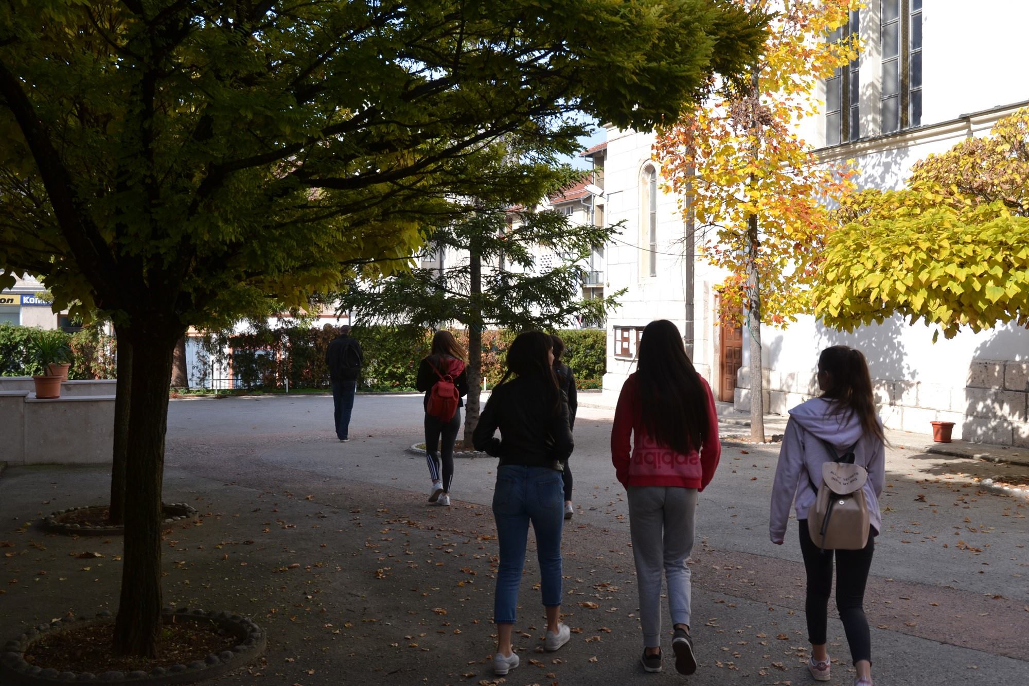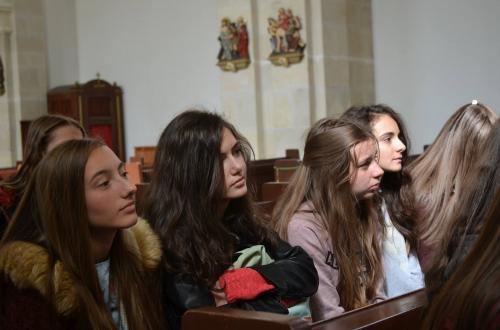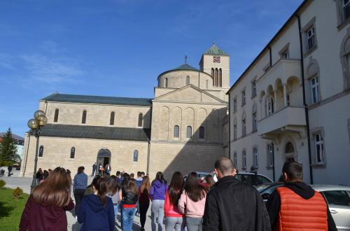 U subotu 14. listopada 2017. godine 30-ak framaša prvog razreda krenulo je na studijsko putovanje samostanima Hercegovačke franjevačke provincije. Pošli smo u 8.00 sati i uputili se u Tomislavgrad gdje nas je dočekao gvardijan samostana fra Sretan Ćurčić. Proveo nas je kroz samostansku crkvu i ukratko ispripovjedio njezinu povijest, a zatim smo posjetili lapidarij u samostanskom klaustru te novouređenu franjevačku knjižnicu i njihov poznati muzej, jedini s afričkom zbirkom u BiH. U crkvi smo vidjeli sliku "Isus prijatelj malenih" slikara Vlahe Bukovca koja je neprocjenjive vrijednosti i ogromnih dimenzija. Nakon Tomislavgrada krenuli smo prema Konjicu. Tu smo posjetili crkvu i muzej i čuli iz usta gvardijana fra Ferde Bobana svjedočanstvo u sve malobrojnijoj katoličkoj zajednici u konjičkom kraju. Poslije toga smo krenuli prema Mostaru. Ručali smo u Dompesu, novootvorenom franjevačkom kompleksu pučke kuhinje i studentskog doma u Mostaru, nakon čega smo obišli crkvu čiji je dovršetak izgradnje u tijeku, potom vidjeli spomen-sobu stare mostarske crkve srušene u Domovinskom ratu i franjevačku knjižnicu pa se popeli na zvonik. Samostanskim nas je kompleksom proveo, uz iscrpno tumačenje povijesnih događaja, provincijski knjižničar fra Ante Marić. Nakon posjeta samostanu prošetali smo do starog mosta. Iz Mostara smo pošli na Široki Brijeg gdje nam je fra Ivan govorio o izgradnji crkve, odveo nas na mjesto smrti dvanaestorice franjevaca i opisao kako su ubijeni. Pokazao nam je jedini kip svetog Franje koji je izradila žena i brojna druga umjetnička djela koja se nalaze u samostanskoj riznici i Franjevačkoj galeriji na Širokom Brijegu. Vidjeli smo, naravno, velebnu širokobriješku crkvu koja čuva mučeničke kosti i kosti fra Didaka Buntića, graditelja crkve te kosti biskupa fra Rafe Barišića, prvoga hercegovačkog biskupa u XIX. st. Posljednji samostan koji smo posjetili je onaj na Humcu. Tu smo susreli fra Antu Mitra, fra Antu Begića i fra Željka Tomića iz Posušja koji se, uz još dvojicu mladića, nalaze u Franjevačkom novicijatu na godini kušnje. Oni su nas proveli kroz prelijepo novicijatsko dvorište, a potom nam je gvardija fra Dario Dodig pokazao staru humačku crkvu, jedinu u Hercegovini koja potječe iz turskog vremena. Vidjeli smo zatim i zanimljivu galeriju križeva, galeriju "Majka" s različitim motivima žene i majke te muzej gdje se, među brojnim arheološkim eksponatima, u najznačajnije ubraja Humačka ploča, ranosrednjovjekovna darovnica. S Humca smo se uz pjesmu vratili u Posušje, oko 21 sat.