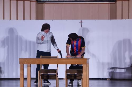 U završnici 13. Festivala religiozne drame uprizorena je predstava pod nazivom ,,Pismo za Majčin dan''. Predstava je održana u ponedjeljak, 24. svibnja. Predstava se bavi tematikom odrastanja mladih, suprostavljanja svakom autoritetu, mladenačkog bunta i prkosa. U predstavu nas je uvela naša glazbena sekcija izvedbom pjesme ,,Zaštiti me Majko'' kojom je odana počast našoj nebeskoj Majci. Glavni likovi drame su Pero, Ante i Jure, tri buntovna dječaka koji svoje smicalice podvaljuju učiteljici i kolegama u razredu. Pri tom se u Perinoj glavi javljaju dva glasa koji su slikovito prikazani kao anđeo i vrag. Roditelji se vraćaju s roditeljskog i kažnjavaju djecu te oni smišljaju plan kako to spriječiti u budućnosti. Nakon što se dječacima javi savjest, odluče se popraviti kako bi njihovi roditelji bili ponosni. Na Majčin dan, Pero, Ante i Jure se dosjete da napišu učiteljici pismo u kojem joj se ispričavaju za sva podmukla djela. Učiteljica je sretna i zadovoljna potezom svojih učenika. Kao i prethodne dvije, i ova predstava ima određenu pouku: Uvijek treba slušati svoju savjest i najveći osmijeh na lice nam izmame pokloni koji se ne mogu kupiti novcem. Ovogodišnji Festival religiozne drame zatvoren je pjesmom ,,Najljepše su oči moje majke'', Miše Kovača, ponovo u izvedbi glazbene sekcije naše Frame. I ove godine naša dramska sekcija pokazala je svoju veliku ljubav prema glumi te kako se veliki trud i rad itekako isplate. Hvala svima na podršci naših framaša i nadamo se da će i dalje koristiti svoj talent darovan od Boga, na hvalu Božju.
